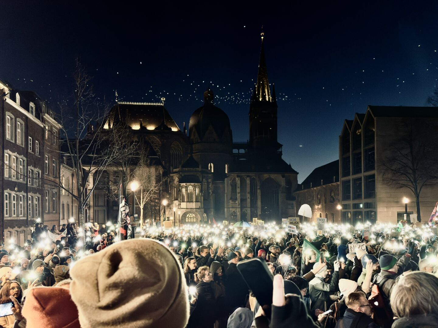 Lichtermeer für #demokatie und #Antifaschismus zu Füßen des aachener Doms.