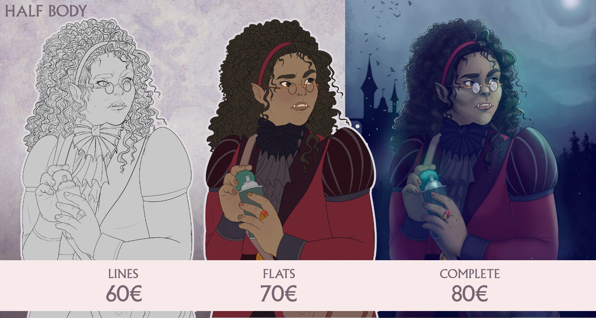 ¡Hi! Just a reminder that my commissions are open. If you need a portrait for your #dndcharacter or maybe a brand new oufit for them, I'm your gal!