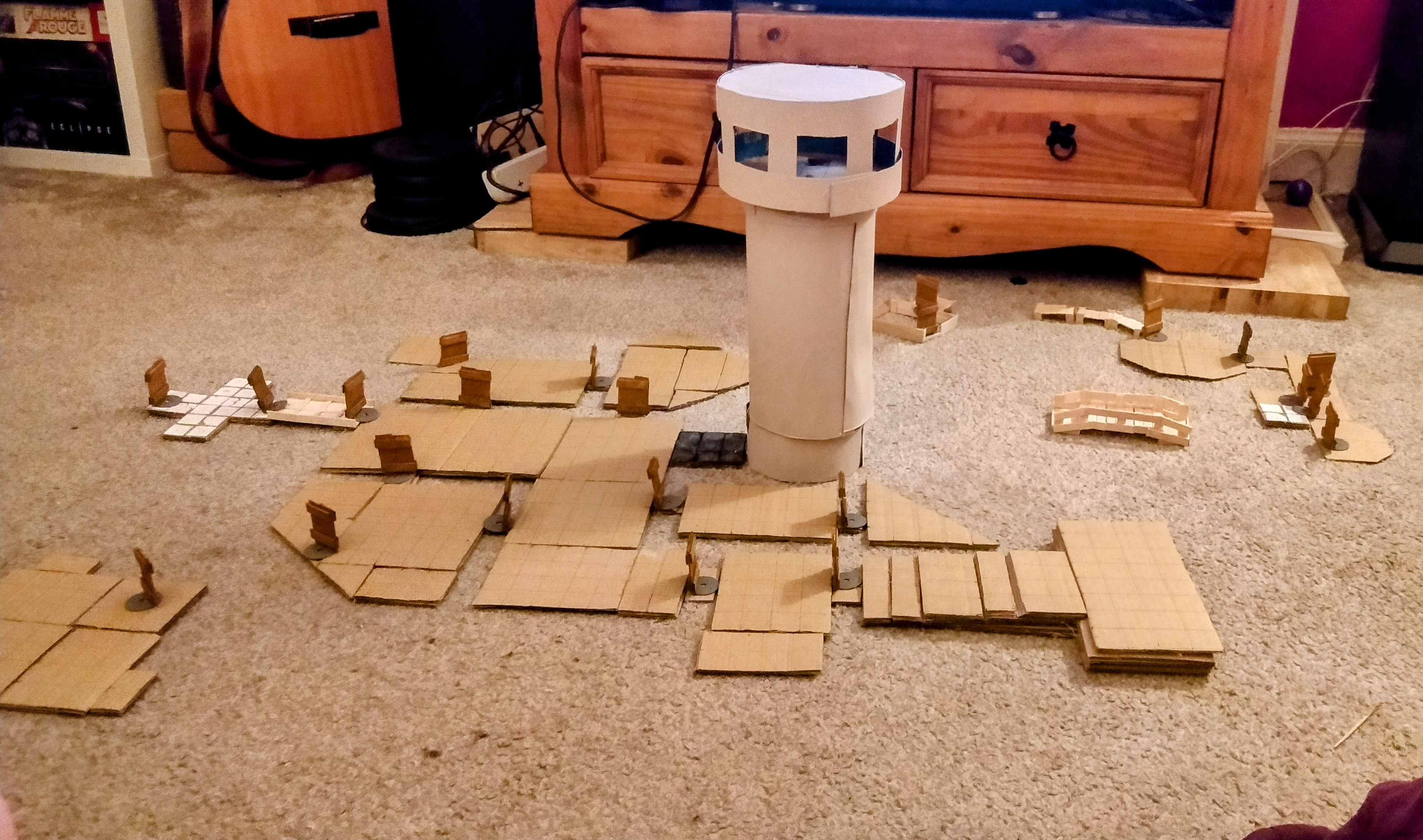 Dungeon build progress - I have all the floor based cut out and the ominous Gauntlight rises above the keep. There's tiled floor on the ground and upper levels. Next is to tile and paint the floors. #dnd #pathfinder #AbominationVaults