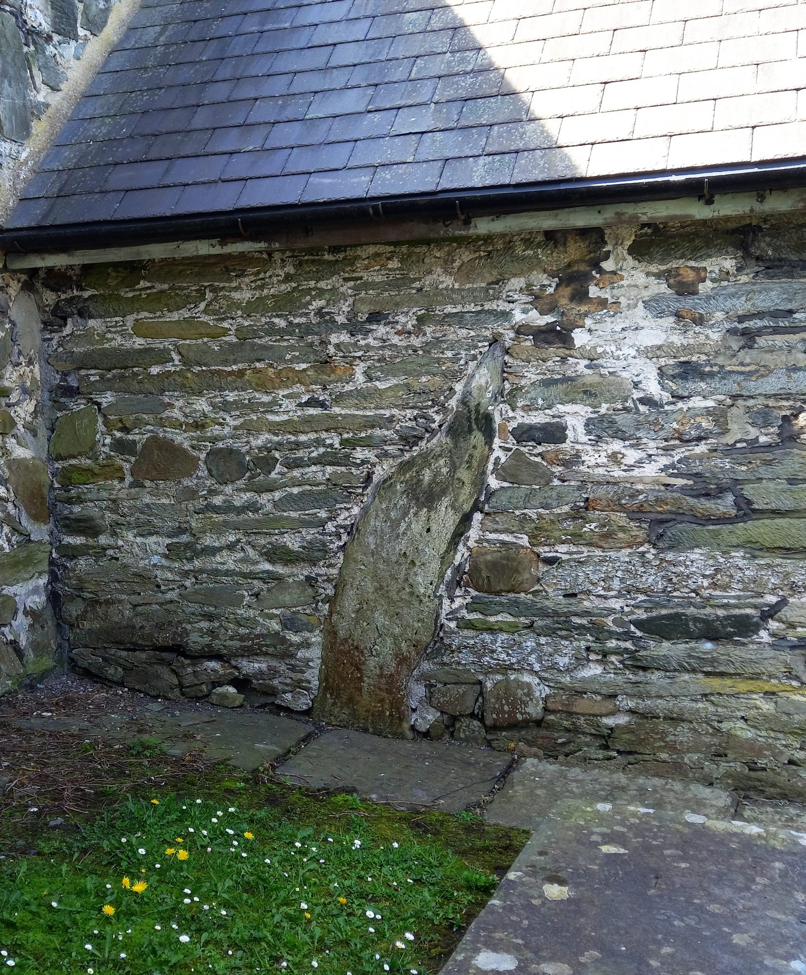 The medieval church porch at Corwen, #Denbighshire has been built round a little standing stone bearing the splendid name of Carreg y Big yn y Fach Rhewllyd (the pointy stone in the icy nook). #Folklore suggests this may have been true of earlier churches on this ancient site.
