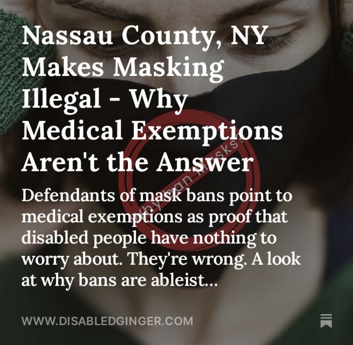 Mask bans mean I could be arrested and charged with a crime. Just for trying to keep myself & others safe.